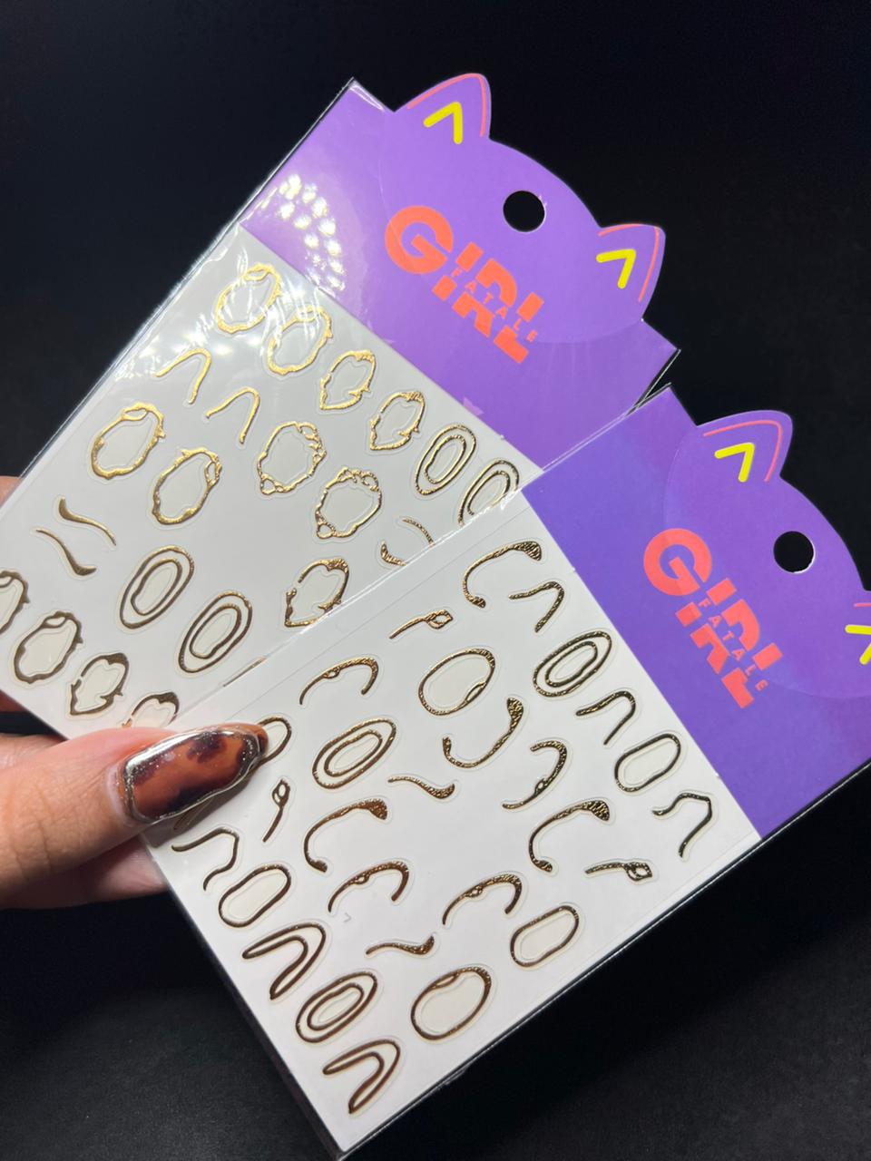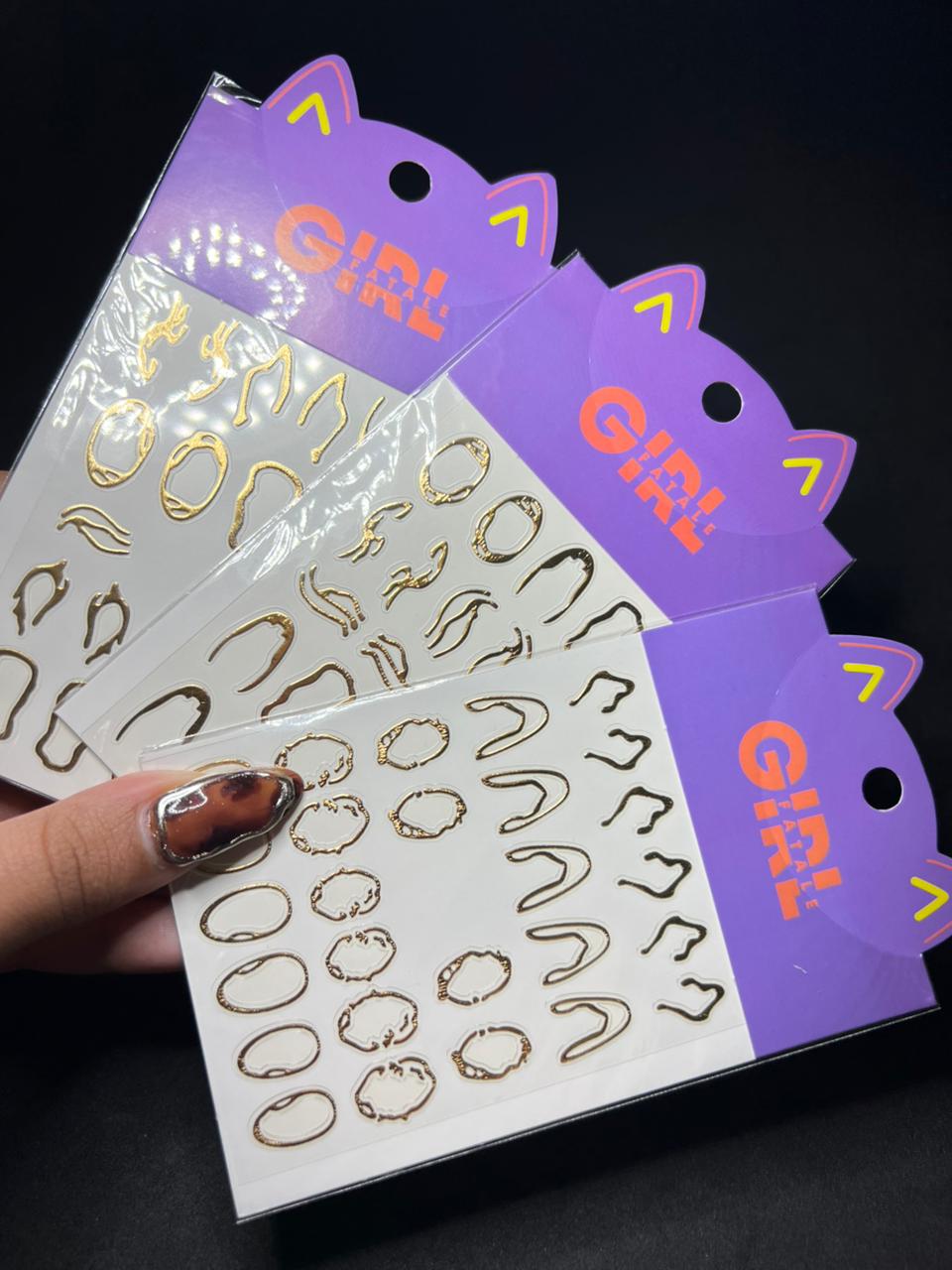 Decoração para unhas em diversos formatos dourados.
