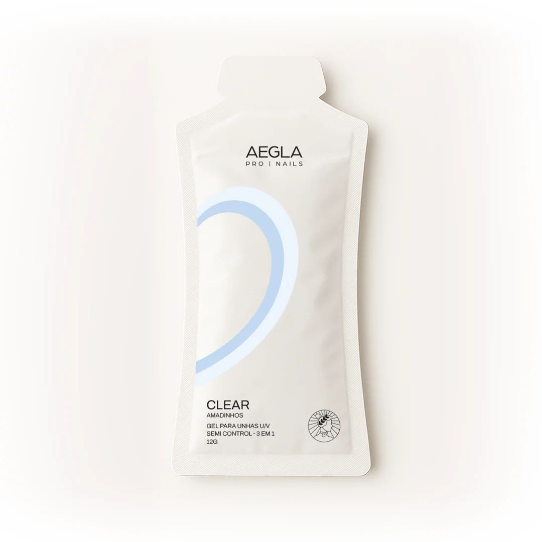 O Aegla Clear é o gel transparente de alta performance, ideal para selar, finalizar construções e realçar o brilho natural das unhas. Desenvolvido com a fórmula reformulada da linha Amadinhos, oferece autonivelamento superior, brilho espelhado e secagem uniforme — sem alterar a cor base. Agora em sachê de 12g, prático e econômico para uso profissional.